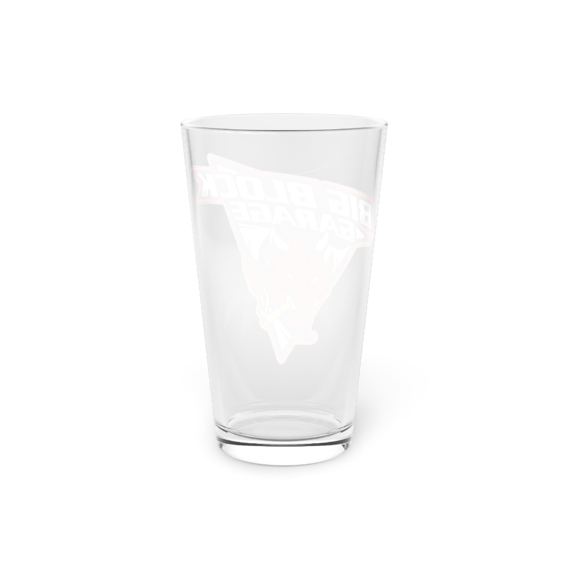 Big Block Garage Devil Logo Pint Glass | 16oz Beer Glass
