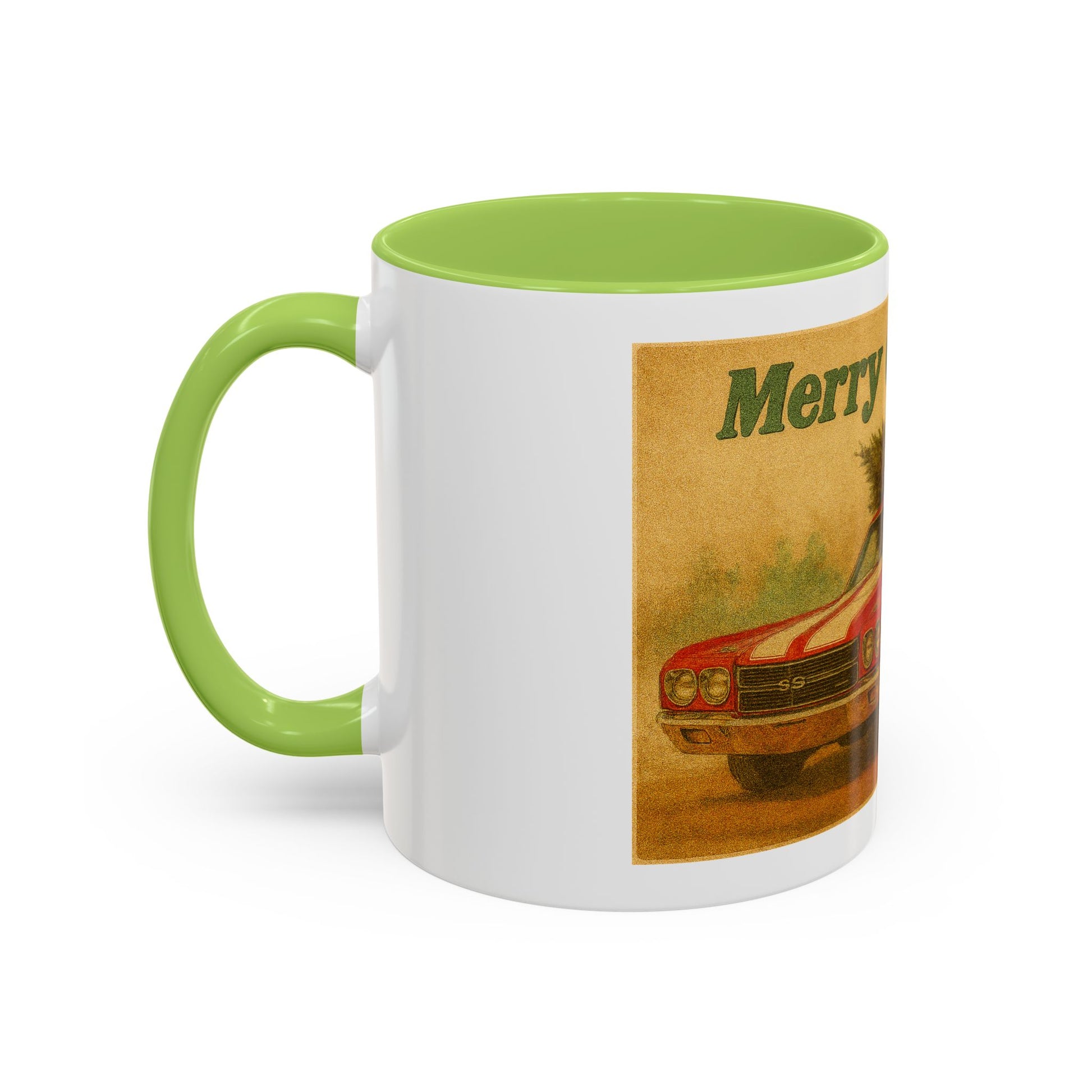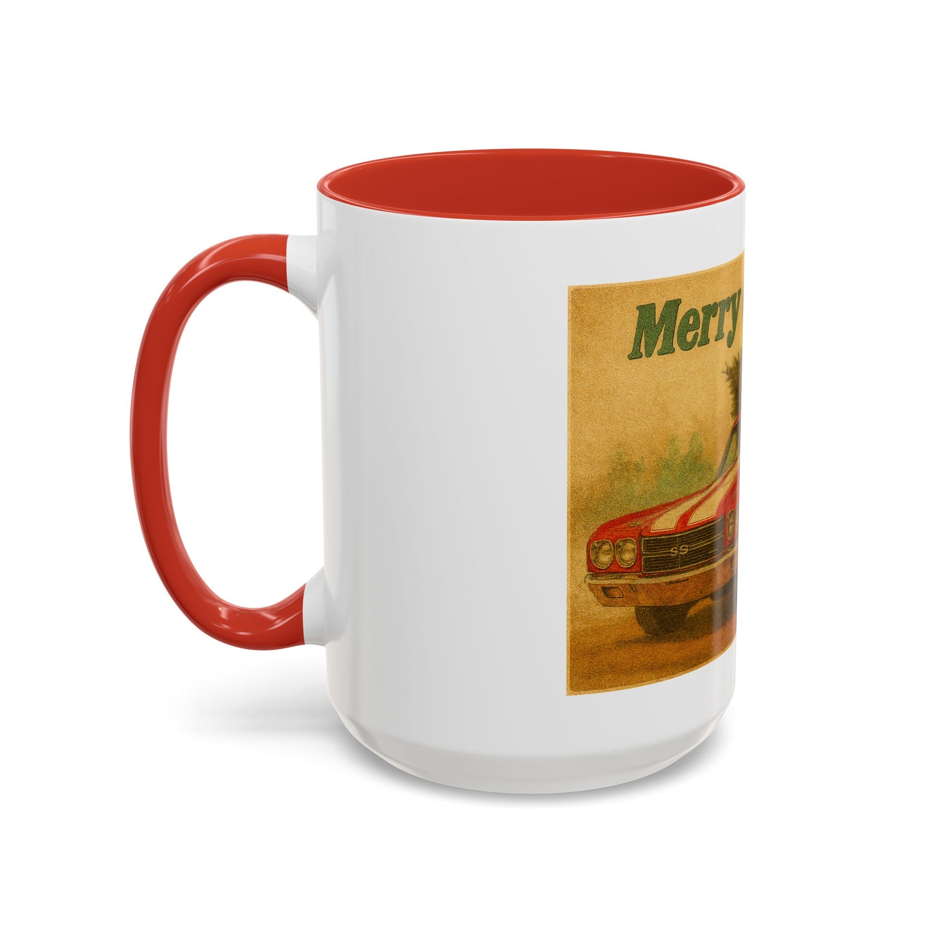 Vintage Santa with Christmas Tree and Chevrolet Chevelle Mug | Accent Coffee Mug